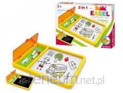 Zestaw przyborów dla małego artysty zapakowany w ozdobne pudełko-kuferek. Ma rączkę do wygodnego przenoszenia i 2 wysuwane szufladki. Zestaw zawiera: - 8 kredek ołówkowych - 8 kredek świecowych - 8 pisaków - 12 farbek wodnych - pędzelek - gąbeczkę - 2 gumki do mazania - ołówek - kolorowankę w formie notesika