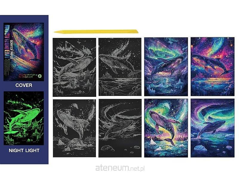 wydrapywanka kolorowa fluo, świeci w nocy, delfiny; 32x25x0,2cm, PPB