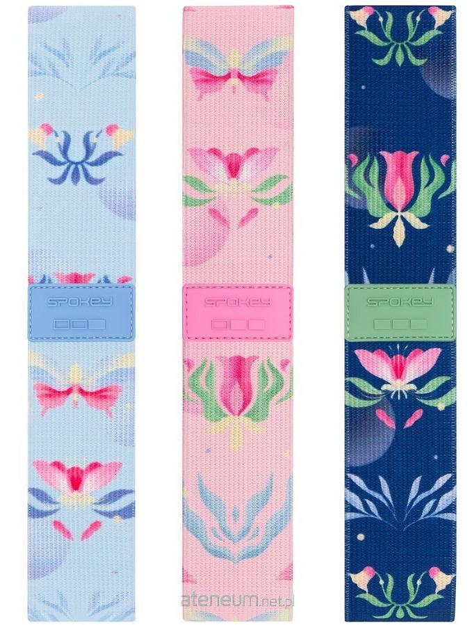 Zestaw trzech gum oporowych o różnym stopniu siły oporu i wszechstronnym zastosowaniu. Mogą być wykorzystane zarówno podczas rozgrzewki, treningu siłowego oraz aerobowego. Gumy nie zwijają się i nie powodują nieprzyjemnego uczucia ściągnięcia skóry.