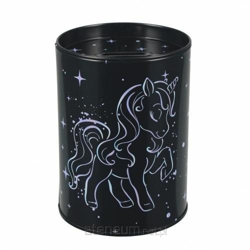 Pojemna skarbonka metalowa okrągła z lakierowanego metalu z otwieranym wieczkiem, która także sprawdzi się jako pojemnik na niezbędne przybory na twoim biurku. Skarbonka STARPAK to idealny pomysł na prezent, który uczy oszczędności i sprawia, że pieniądze są bezpieczne. Skarbonka z ulubionym Jednorożcem