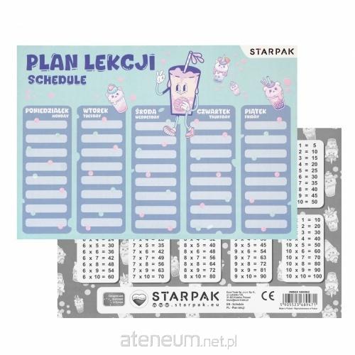 Plan lekcji jest niezbędnym elementem wyposażenia szkolnej wyprawki. Plan z kolekcji STARPAK z grafiką Bubble Tea zawiera podział na pięć dni tygodnia z 8 wierszami do wpisu, dzięki czemu żaden uczeń nie zapomni o potrzebnych mu danego dnia książkach czy zeszytach, dodatkowo na odwrotnej stronie posiada tabliczkę mnożenia. Przyjazna grafika sprawi, że każdy dzień w szkole będzie dobrze zaplanowany i udany. Zapoznaj się również z innymi produktami Starpak! Plan lekcji wykonany z papieru. Wyprodukowany w Polsce. Pakowany w folię po 25 sztuk. Wymiary produktu( szer.x wys.) [cm]: 23x16. Waga produktu w opakowaniu [kg]: 0,24 kg.