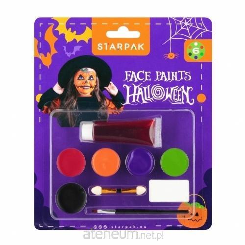 Farby do malowania twarzy, ciała, 6 kolorów plus akcesoria STARPAK. Farby w 6 kolorach: czerwony, pomarańczowy, fioletowy, zielony, czarny oraz biały, farby łatwo zmywalne, bezpieczne(przed użyciem zapoznaj się z opisem produktu znajdującym się na opakowaniu!).Dzięki temu zestawowi kreatywność dziecka nie zna granic! Każda farbka zapakowana w osobnym pojemniczku, mały podwójny aplikator do malowania oraz mały pędzelek z pewnością spełnią oczekiwania. Zawartość zestawu: 6 kolorów farb do malowania twarzy, 1 x pędzelek, 1 x aplikator do malowania.