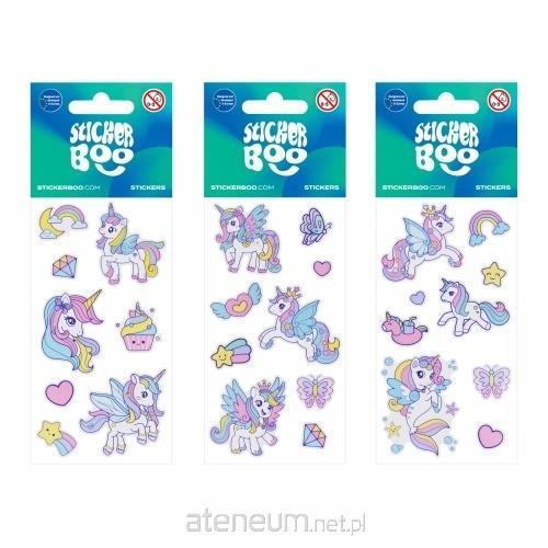 Naklejki STICKERBOO z grafiką z Unicornami z pewnością przypadną do gustu dzieciakom, idealne do zdobienia rysunków, wszelkiego rodzaju prac plastycznych oraz kolekcjonowania. Dostępne w 3 odsłonach graficznych.Wysyłka losowo. Wymiary/waga: wymiary produktu (wys. x szer.) [cm]: 12x6, waga produktu w opakowaniu [kg]: 0,005 kg. Pakowane na blistrze w folię.