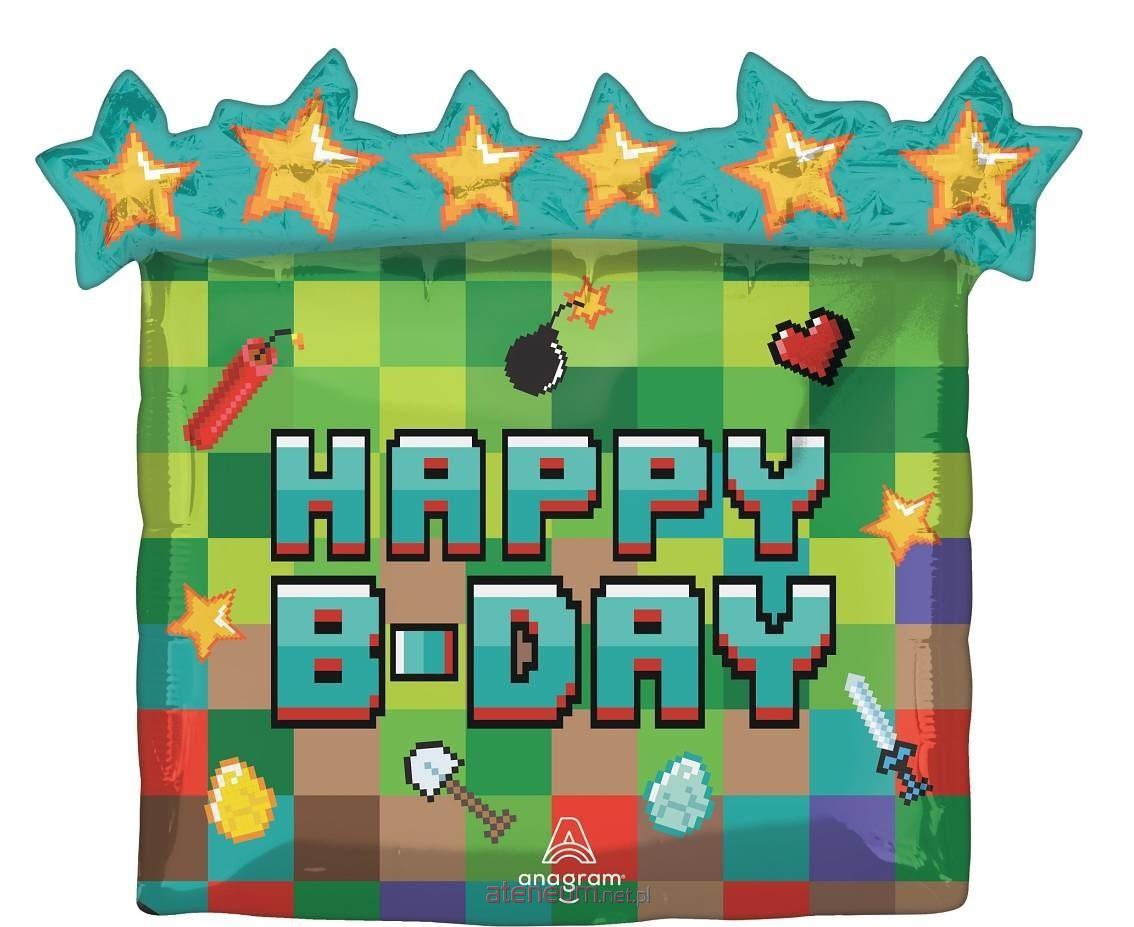 BALON FOLIOWY URODZINOWY HAPPY B-DAY, PIXEL