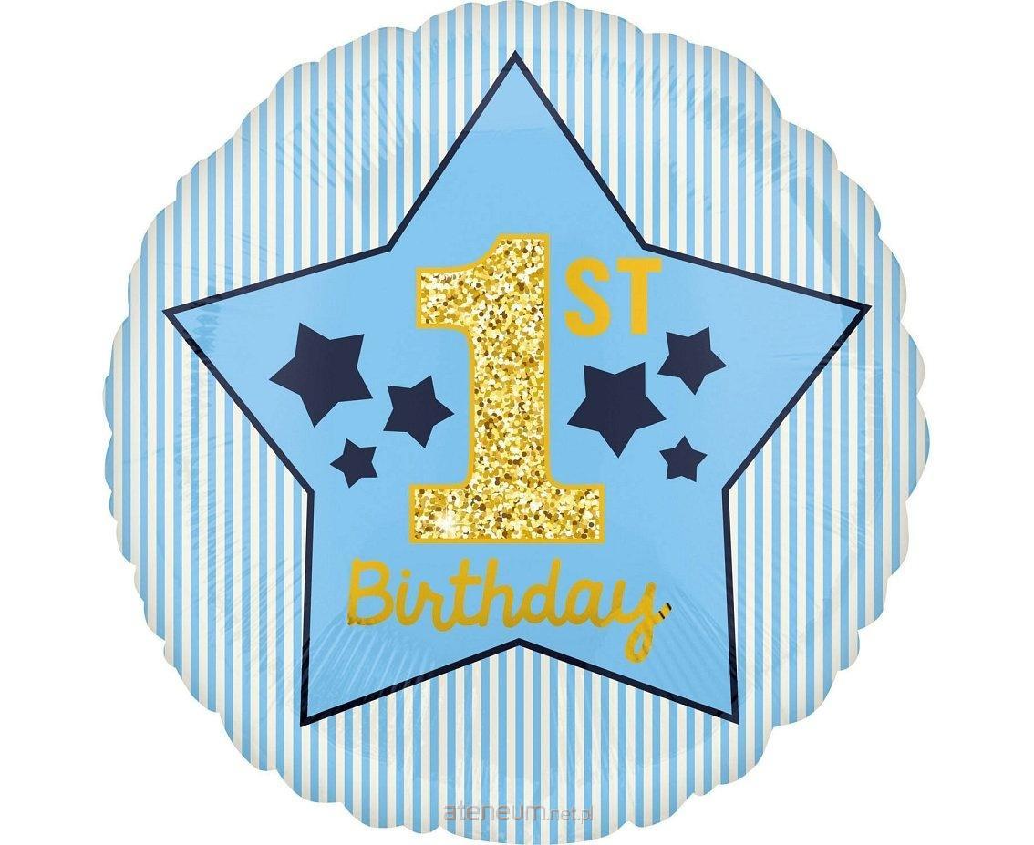 BALON FOLIOWY Z NADRUKIEM 1st BIRTHDAY NIEBIESKI