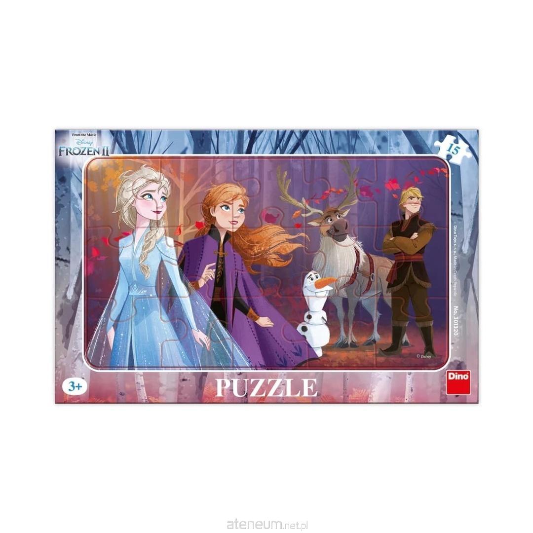 Frozen II Kraina Lodu - Puzzle Ramkowe z Elsą i Anną, 15 elementów Najważniejsze cechy: Magiczne wzornictwo: obrazek inspirowany filmem "Frozen" przyciąga uwagę dzieci. Solidne wykonanie: puzzle z wysokiej jakości materiałów, bezpieczne dla dzieci. Wymiary: po ułożeniu obrazek ma 25 x 14,5 cm. Dostosowane do maluchów: odpowiednie dla dzieci od 3 lat. Liczba elementów: 15 Wymiary razem z ramką: 29,5 x 19 cm Wyprodukowane w Czechach Producent: Dino Certyfikat bezpieczeństwa CE