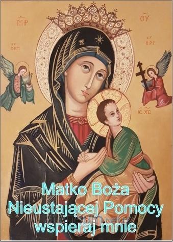 Obraz Matki Boskiej Nieustającej Pomocy to cudowna ikona maryjna, pochodząca z tradycji bizantyjskiej, znana z licznych łask i otaczana wielkim kultem na całym świecie, zwłaszcza w Kościele katolickim. Ikona przedstawia Matkę Bożą trzymającą na lewym ramieniu Dzieciątko Jezus, które z niepokojem patrzy na dwa anioły trzymające narzędzia męki: krzyż, gwoździe i włócznię. Jezus, w geście dziecięcego lęku, trzyma się dłoni Maryi, a jednocześnie jego sandał zsuwa się z nogi symbolizuje to gotowość do ofiary i ludzką naturę Jezusa. Maryja patrzy na widza z powagą i spokojem, jakby chciała przekazać, że zawsze czuwa i nigdy nie przestaje pomagać.