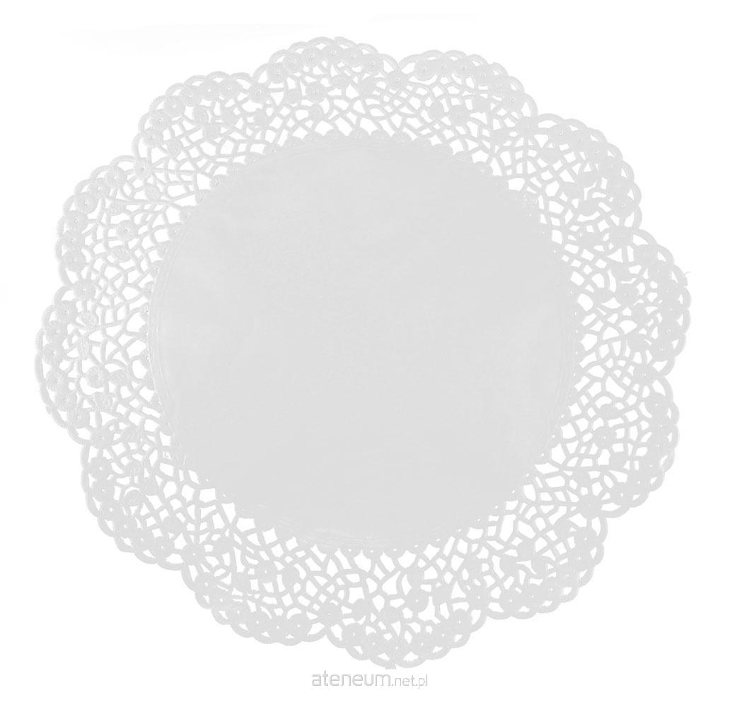 Serwetka papierowa z ażurowym brzegiem pod ciasto pakowana po 100 sztuk.