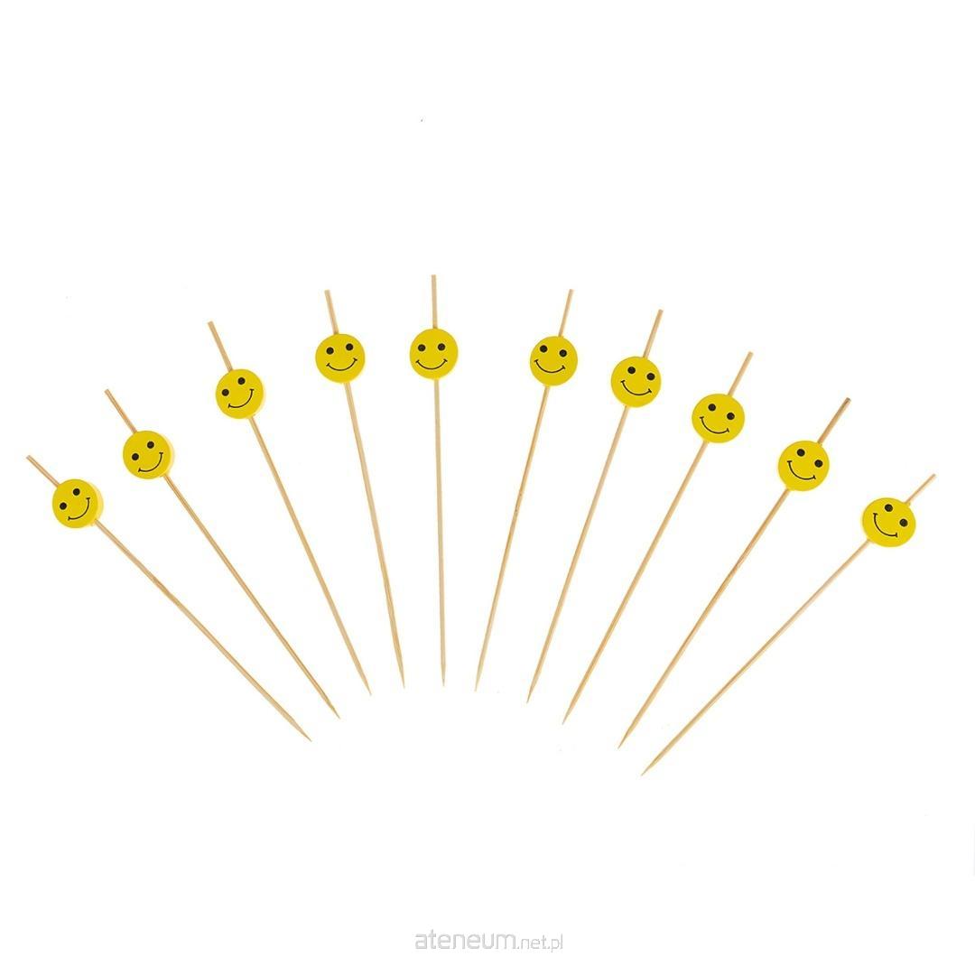 Wykałaczki zakończone dekoracyjnymi kształtami ze wzorem uśmiechniętej buzi. Idealne do koreczków wytrawnych jak i słodkich, jako dekoracja ciast, muffinów, owoców. Dekoracyjne wykończenie patyczków nadaje potrawom ciekawego wyglądu. Produkt posiada certyfikat FSC®, co oznacza, że surowce wykorzystane do jego produkcji zostały pozyskane w zgodzie z odpowiedzialnym i legalnym korzystaniem ze światowych zasobów leśnych. W opakowaniu znajduje się 10 sztuk. Szpilki o długości 12 cm.