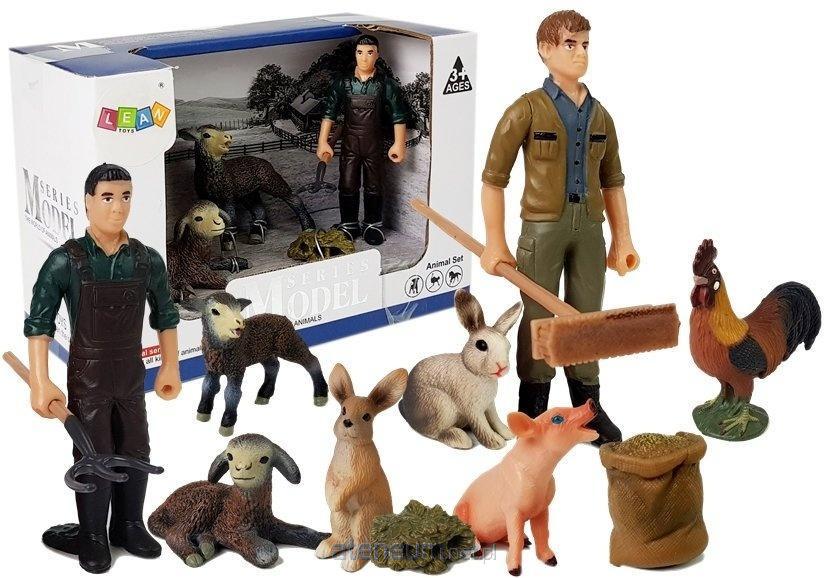 Zestaw Figurek Farma 5 elementów Wspaniale wykonane z najwyższą dbałością o szczegóły figurki elementów farmy powiększą kolekcję każdego małego kolekcjonera. Każda figurka została starannie odlana z tworzywa i bardzo starannie pomalowana przez co wiernie oddaje rzeczywisty wygląd zwierzęcia, postaci czy przedmiotu. Figurki pozwolą każdemu dziecku na stworzenie własnego rolnictwa. Kolekcjonowanie figurek wiejskich może stać się piękną pasją. Figurki farmera posiadają możliwość wyjęcia przedmiotu z ręki. Do wyboru: - rolnik z widłami, dwie owieczki, króliczek i sianko - rolnik z miotłą, świnka, kogut, króliczek i worek paszy Po dokonanym zakupie prosimy o poinformowanie o wyborze zestawu w notatce do zamówienia. Wysokość wybranych figurek: - rolnik z widłami bądź z miotłą: 9.5 cm - owieczki: 5cm, 3.5 cm - świnka: 4 cm - kogut: 6 cm Wymiary pudełka: 16 cm x 10 cm x 11,5 cm Zabawki przeznaczone są dla dzieci powyżej 3. roku życia. Figurki posiadają certyfikat CE i są zgodne z normą EN 71. Zapakowane jest w kartonik, dzięki czemu nadaje się idealnie na prezent.