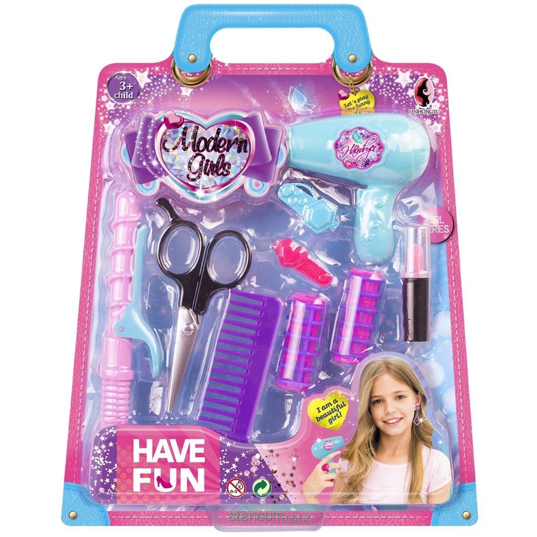 Zestaw Fryzjerski i Do Makijażu dla Małej Stylistki - "Modern Girls" Rozwiń kreatywność i wyobraźnię Twojego dziecka dzięki temu uroczemu zestawowi do zabawy w stylistkę i makijażystkę! Zestaw "Modern Girls" to idealna propozycja dla każdej dziewczynki, która uwielbia dbać o swój wygląd i eksperymentować z fryzurami. Wszystkie elementy zapakowane są w estetyczne opakowanie przypominające walizkę, co ułatwia przechowywanie i przenoszenie. Co znajdziesz w zestawie? Suszarka do Włosów: Stylowa suszarka w odcieniach błękitu i różu, która pozwoli na zabawę w prawdziwe suszenie włosów (zabawka bez funkcji grzania). Nożyczki: Bezpieczne nożyczki do zabawy w strzyżenie. Grzebień: Niezbędny do rozczesywania i układania fryzur. Lusterko: Małe lusterko do podziwiania efektów stylizacji. Lokówki: Dwie urocze lokówki do tworzenia fantazyjnych fal i loków. Szminka: Atrapa szminki (bezpieczna, bezbarwna lub przeznaczona do zabawy), która pozwoli na "makijaż". Prostownica/Lokówka (zabawkowa): Akcesorium do stylizacji włosów. Spinki/Gumki do włosów: Drobne akcesoria do upinania fryzur. Dlaczego warto wybrać ten zestaw? Rozwój Kreatywności i Wyobraźni: Dziecko może tworzyć własne stylizacje, udawać wizyty u fryzjera czy w salonie piękności. Nauka Ról Społecznych: Zabawa w dorosłych i naśladowanie codziennych czynności rozwija umiejętności społeczne i empatię. Bezpieczne Materiały: Wszystkie elementy zestawu wykonane są z bezpiecznych dla dzieci materiałów. Estetyczne Opakowanie: Opakowanie w formie walizki z rączką ułatwia przechowywanie i czyni zestaw idealnym do zabrania w podróż czy do koleżanki. Idealny na Prezent: Doskonały upominek na urodziny, święta lub inną specjalną okazję dla każdej małej miłośniczki mody i stylizacji. Wielkość opakowania: 30x24x3 cm Zapewnij swojemu dziecku godziny kreatywnej zabawy z zestawem fryzjerskim i do makijażu "Modern Girls"!