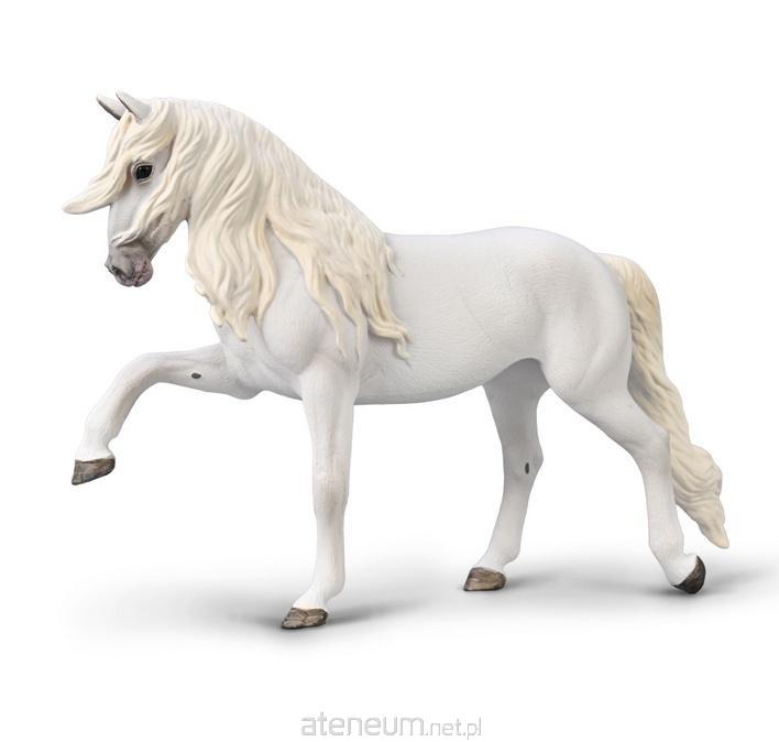 Elegancka figurka klaczy lipicańskiej w dynamicznym chodzie hiszpańskim. Realistycznie odwzorowana, z charakterystyczną siwą maścią i starannie oddanymi detalami. . Idealna do kolekcji lub jako element edukacyjny.