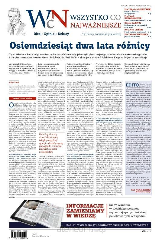 Wszystko Co Najważniejsze to pismo idei, debat i opinii pod red. prof. Michała Kleibera. Teksty autorskie najwybitniejszych autorów polskich, europejskich, światowych.