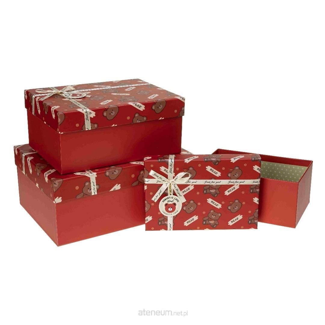 Pudełko prostokątne z kokardą 3szt czerwony ROZETTE