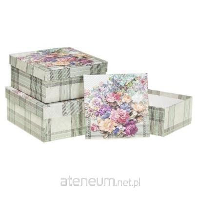 Pudełko kwadrat 3szt kwiaty krata ROZETTE