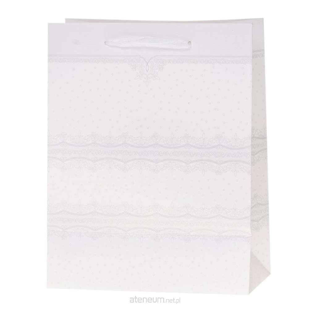Torebka Lux 18x23x10cm brokat biała ROZETTE