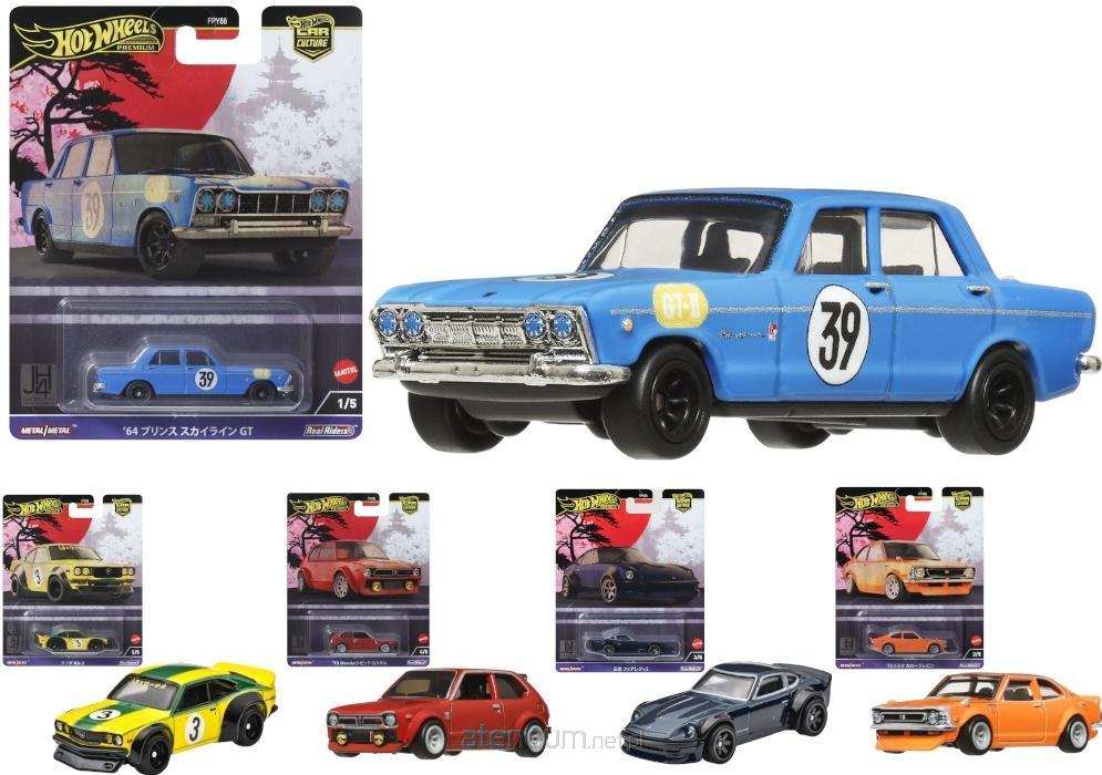 Kolekcja Hot Wheels Premium Car Culture Japan Historics 3 (FPY86-9C1B) to wyjątkowa seria metalowych modeli samochodów inspirowanych klasycznymi i kultowymi pojazdami japońskiej motoryzacji z lat 60., 70. i 80. Modele oferowane są w asortymenciekażdy z nich to osobny, kolekcjonerski egzemplarz wyprodukowany w skali 1:64. Linia charakteryzuje się najwyższą jakością wykonania: metalowym nadwoziem i podwoziem (Metal/Metal), realistycznym odwzorowaniem detali oraz oponami z tworzywa gumowego (Real Riders). Modele posiadają dedykowane malowania inspirowane sportem motorowym oraz klasyką japońskiego tuningu, co czyni je obowiązkową pozycją dla każdego miłośnika JDM i serii Car Culture.