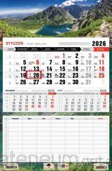 Kalendarz wieloplanszowy ścienny 12 kart plus okładka pokryta lakierem UV. Miesiąc na stronie, spięty spiralą wraz z drucianą zawieszką. Format 32x48 cm. Kalendarium trójdzielne trzy miesiące na stronie, zaznaczone święta i NIEDZIELE HANDLOWE. Kalendarz charakteryzuje się umiejętnym połączeniem estetyki kalendarium wraz z jego funkcjonalnością.