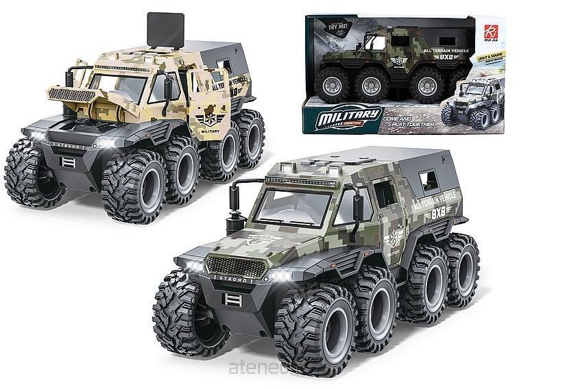Pojazd wojskowy, 8 kołowy, światła, dźwięk, otwierane drzwi; 25,5x11,5x11,5cm, W/B