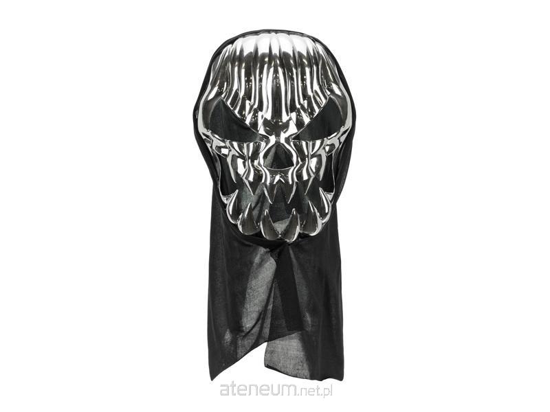 Maska z kapturem Czaszka w kolorze srebrno-czarnym, wymiary maski ok. 18.5 x 24.5 cm, długość kaptura ok. 43 cm.