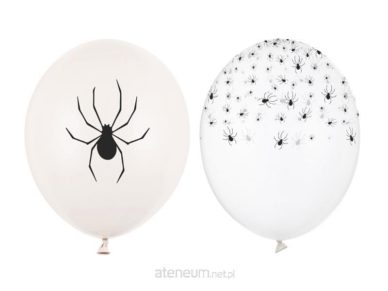 Balony Strong Pająki z nadrukiem, zestaw zawiera 2 kolory balonów (Pastel Off-white i Crystal Clear) z nadrukiem, średnica ok. 30 cm.(1 op. / 50 szt.)