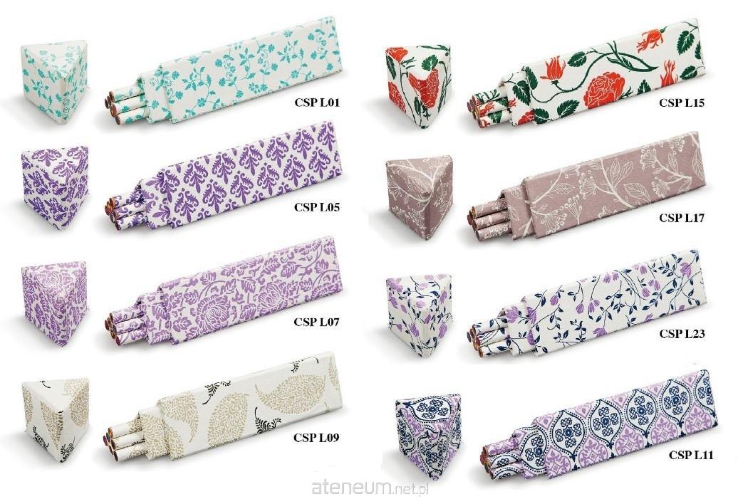Zestaw 6 ozdobny kredek owiniętych włoskim papierem dekoracyjnym. Całość zapakowana w trójkątne pudełko. Wyprodukowano we Włoszech. Mix wzorów, wzór wysyłany losowo.
