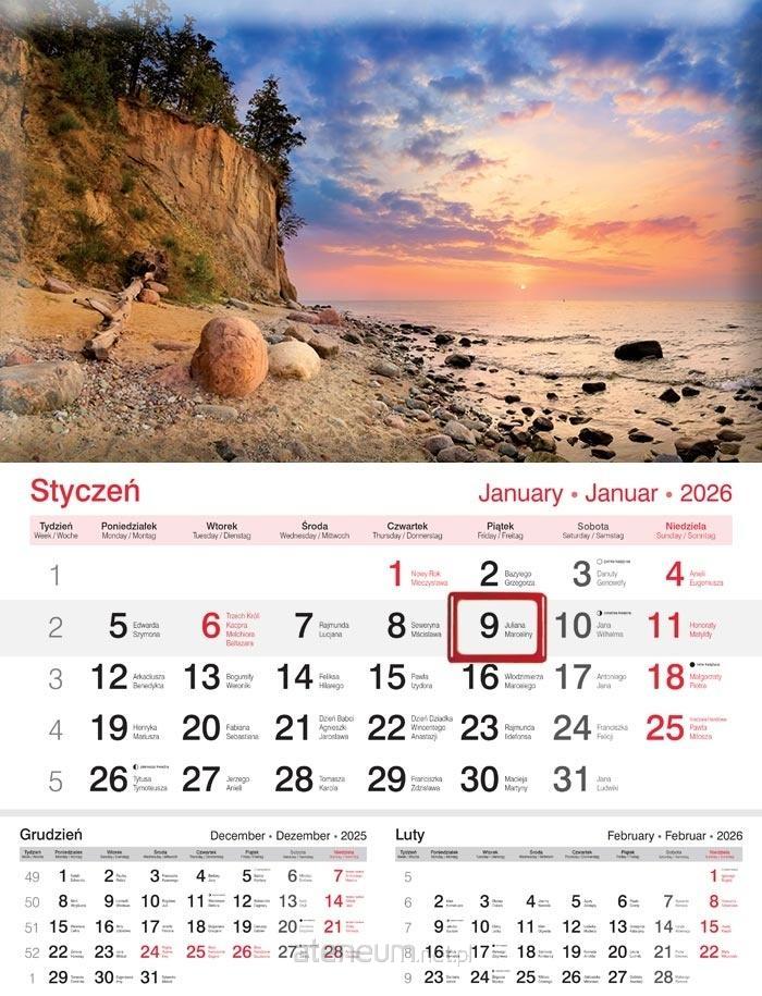 druk: zdjęcie jednostronny barwny + folia błysk; kalendarium jednostronny, barwny;