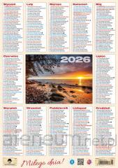 Kalendarz 2026 ścienny trójdzielny Kaskada