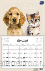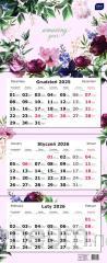 kalendarium: na stronie miesiąc bieżący oraz miesiąc poprzedni i następny (w zależności od wzoru); bieżąca numeracja tygodni;
