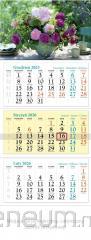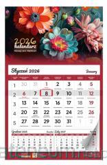 Kalendarz 2026 ścienny trójdzielny Kwiaty