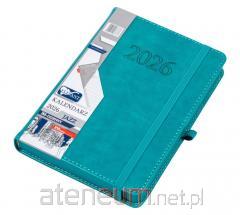 W środku miejsce na notatki, roczny planer, oznaczone wybrane święta międzynarodowe, mini kalendarium, międzynarodowe numery telefonów, strefy czasowe,