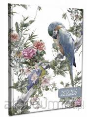 W środku miejsce na notatki, roczny planer, oznaczone wybrane święta międzynarodowe, mini kalendarium, międzynarodowe numery telefonów, strefy czasowe,