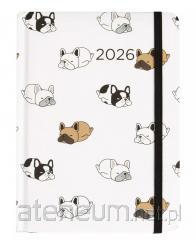 W środku miejsce na notatki, roczny planer, oznaczone wybrane święta międzynarodowe, mini kalendarium, międzynarodowe numery telefonów, strefy czasowe,