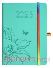 W środku miejsce na notatki, roczny planer, oznaczone wybrane święta międzynarodowe, mini kalendarium, międzynarodowe numery telefonów, strefy czasowe, skorowidz na adresy i telefony,
