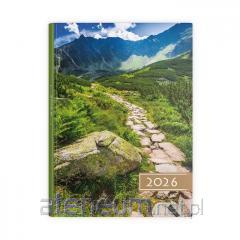 W środku miejsce na notatki, roczny planer, oznaczone wybrane święta międzynarodowe, mini kalendarium, międzynarodowe numery telefonów, strefy czasowe oraz mini skorowidz na adresy i telefony,