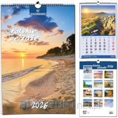 KALENDARZ TRÓJDZIELNY 2026 WYMIAR CAŁKOWITY KALENDARZA: 32 x 85,5cm GŁÓWKA KALENDARZA: Zdjęcie uszlachetniane folią błysk, z efektem wypukłości. KALENDARIUM: wym. 28,5 x 14 cm, trójjęzyczne (PL, GB, D), z numeracją tygodni i imieninami jest przytrzymywane przez kartonowe wypustki, które zapobiegają jego odstawaniu od plecków kalendarza. WYKOŃCZENIE: kartonowa zawieszka, pasek z czerwonym przesuwanym okienkiem, miejsce na notatki. WYMIAR ZDJĘCIA 32 x 22 cm ZDJĘCIE Z EFEKTEM WYPUKŁOŚCI: uszlachetnione folią błysk.