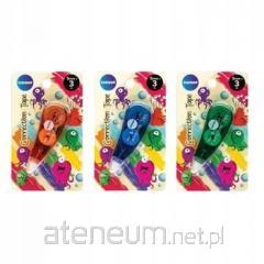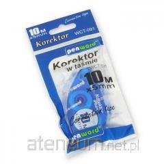 Korektor w taśmie, szerokość 5 mm, długość 6 metrów. Ergonomiczny kształt obudowy dopasowany do dłoni. Wysokiej jakości taśma korekcyjna odporna na zerwanie z idealnie przylegającą do powierzchni papieru warstwą korygującą, po której można pisać bezpośrednio po zastosowaniu. Do użytku na większości rodzajów papieru. Przezroczysta obudowa pozwala śledzić pozostałą ilość taśmy korygującej. Estetycznie zapakowany w twardy blister.
