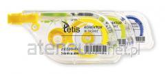 Korektor w taśmie, szerokość 5 mm, długość 15 metrów. Ergonomiczny kształt obudowy dopasowany do dłoni. Wysokiej jakości taśma korekcyjna odporna na zerwanie z idealnie przylegającą do powierzchni papieru warstwą korygującą, po której można pisać bezpośrednio po zastosowaniu. Do użytku na większości rodzajów papieru. Przezroczysta obudowa pozwala śledzić pozostałą ilość taśmy korygującej. Estetycznie zapakowany w twardy blister. Obrotowa końcówka pozwala używać go w dwóch płaszczyznach.