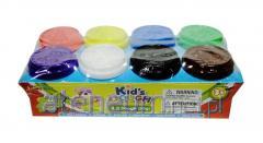 - w zestawie: pachnący piasek puszysty w czterech kolorach, 6 plastikowych foremek, 1 zabawkowa łyżka i 1 mata;