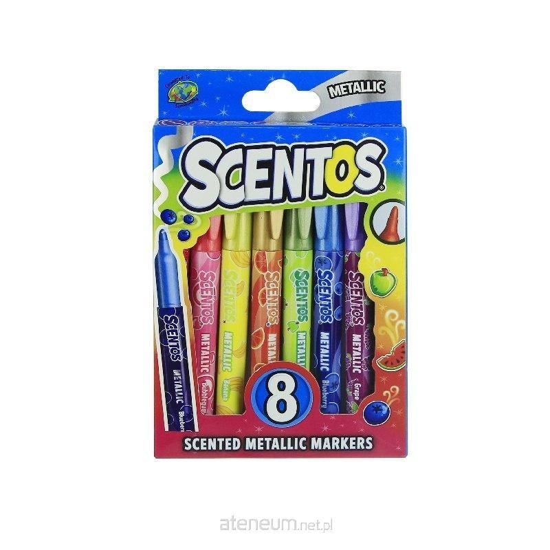 Dodaj tworzonym przez siebie tekstom i obrazkom odrobiny lustrzanego błysku! Zestaw pachnących markerów tworzy osiem metalicznych mazaczków w różnych kolorach. Markery pachną słodko, a inspiracją dla zastosowanych w nich zapachach były popularne owoce oraz guma balonowa.