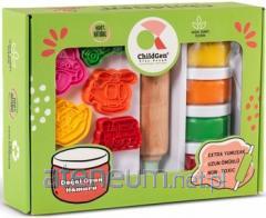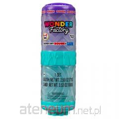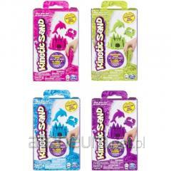 - w zestawie: pachnący piasek kinetyczny w pięciu kolorach, 6 plastikowych foremek, 1 zabawkowa łyżka, 1 zabawkowy wałek i 1 mata;