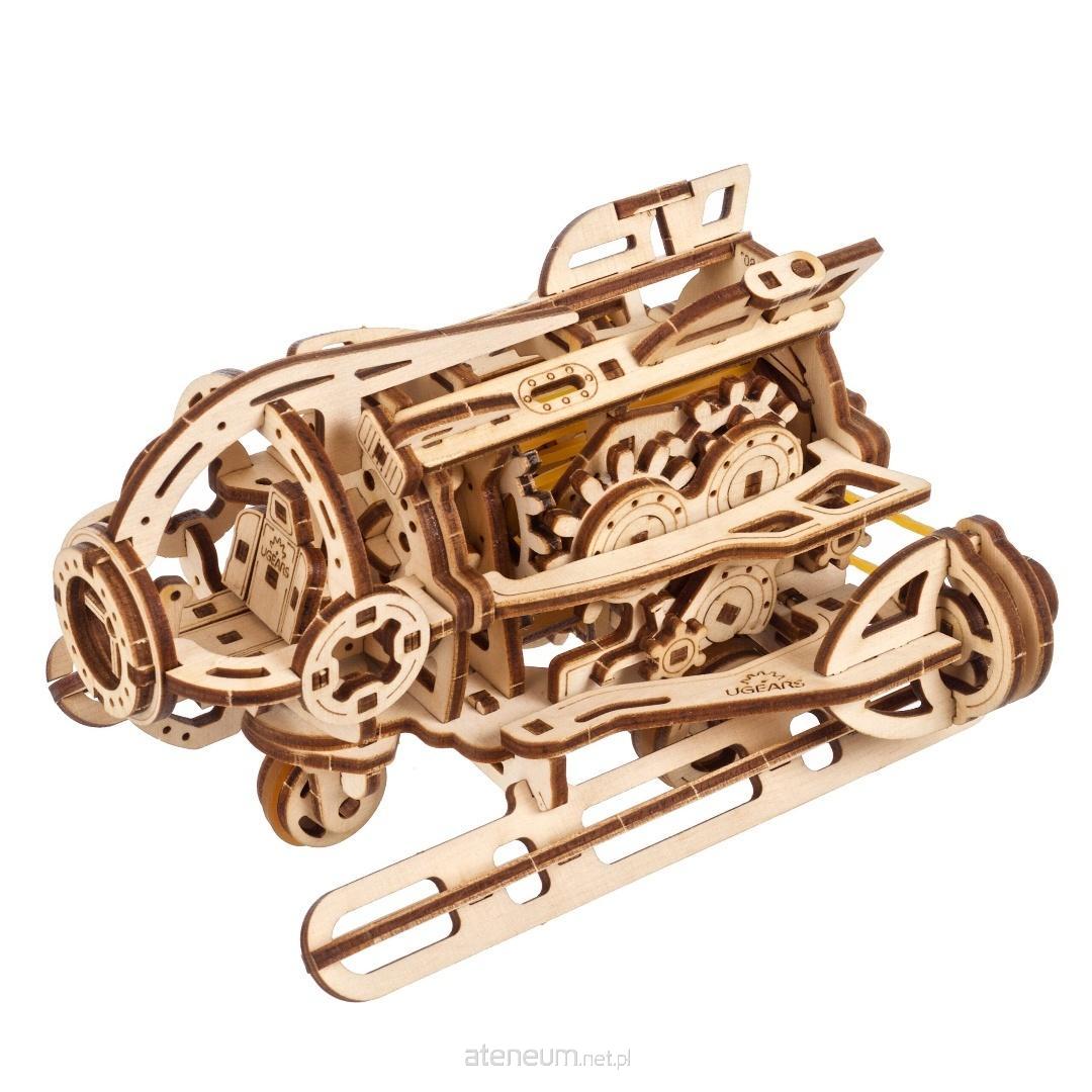Biorąc pod uwagę liczne prośby naszych Klientów będących fanami podwodnego świata, modelarstwa a także wyjątkowych maszyn przedstawiamy nasz model łodzi podwodnej, który dzięki swojej steampunkowej budowie umożliwi Ci dokładną obserwację silnika. A jest na co popatrzeć! Niepozorny element z gumową taśmą stanowi bowiem serce naszej maszyny. Posiada specjalny przełącznik Start/Stop ułatwiający obsługę. Dzięki jego pracy Twoja łódź może płynąć w linii prostej lub wykonywać skręty w lewo i w prawo przez około 2,5 metra. System przekładni napędza ruchome śmigła, dodając układance mechanicznej iluzji podwodnego pędu. Sam model wykonany został jak zawsze z najwyższej jakości drewnianej sklejki, w skali 1:48. Ceniona przez naszych klientów steampunkowa stylistyka łodzi wspaniale przekazuje ideę, że nie jest to jedynie gotowy model produkcyjny, ale także realizacja pasji genialnego, nieco ekscentrycznego wynalazcy maszyn, którym możesz stać się i Ty!