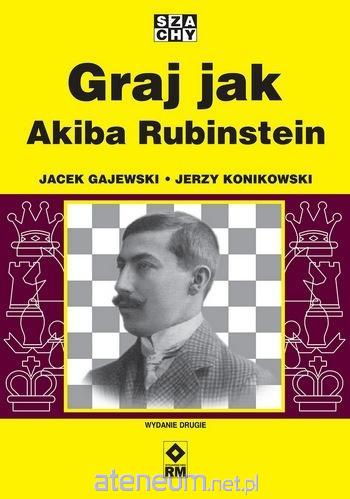 "...współczesne szachy, których początkiem była epoka Botwinnika, uformowały się pod silnym wpływem partii Rubinsteina, który w istocie zasługuje na miano jednego z nowatorów". Garri Kasparow, Moi wielcy poprzednicy, t. 1, Warszawa 2006 Akiba Rubinstein, najwybitniejszy do dziś polski szachista, uważany jest za klasyka szachów. Jego kariera przypadła na pierwsze trzydzieści lat XX wieku. Chociaż nie pozostawił po sobie wielu prac teoretycznych ani zapisków, to o jego dokonaniach świadczą nazwy wielu wariantów szachowych otwarć. W książce, składającej się z części biograficznej oraz części poświęconej twórczości szachowej Rubinsteina, przedstawiono biografię, przebieg kariery oraz 70 partii najlepiej ilustrujących dokonania wielkiego Akiby w rozwoju królewskiej gry. Zaprezentowane partie zostały sklasyfikowane tematycznie w następujący sposób: 1. zasługi dla rozwoju teorii debiutów, 2. strategia i taktyka w grze środkowej, 3. technika rozgrywania końcówek. Jacek Gajewski - nauczyciel wychowania fizycznego, historii oraz instruktor szachów w Szkole Podstawowej nr 62 im. Józefa Kocurka w Katowicach. Jest współautorem dwóch książek (razem z Jerzym Konikowskim) o tematyce szachowej oraz artykułów naukowych o szachach. Obronił pracę doktorską na wydziale socjologiczno-historycznym Uniwersytetu Rzeszowskiego pt. "Rozwój szachów kobiet w Polsce w latach 1945-1989". Jerzy Konikowski - mistrz FIDE i doświadczony szkoleniowiec I klasy. W latach 1978-1981 pełnił funkcję trenera kadry narodowej Polskiego Związku Szachowego. Był selekcjonerem i kapitanem drużyny kobiet, która zdobyła brązowy medal na olimpiadzie na Malcie w 1980 roku. Jest uznanym teoretykiem szachowym. Jego liczne fachowe książki oraz artykuły ukazały się w Polsce, Niemczech, USA, Hiszpanii, Włoszech, Holandii, Republice Czeskiej, Rosji, Luksemburgu i Danii.