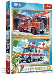Puzzle 2x24 Wóz strażacki i karetka TREFL