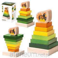 To klasyczna zabawka, zachwycają prostotą, a jednocześnie pobudzają kreatywność, oferując przy tym przyjemnie spędzony czas. Drewniana podstawa ma zaokrąglone krawędzie i zakrzywioną podstawę dla bezpiecznej i dodatkowo wymagającej zabawy. Zabawka wspomaga rozwój koordynacji wzrokowo-ruchowej i stymuluje drobne umiejętności motoryczne, a dzieci nauczą się rozpoznawać różne rozmiary, kształty i kolory. Drewniana zabawka do układania jest wykonana z wysokiej jakości, 100% certyfikowanego drewna bukowego FSC®. Wszystkie farby na tym produkcie są na bazie wody. Dostępne w wielu różnych zwierzątkach. Materiał: drewno bukowe FSC (C) Wiek: 12m+