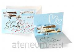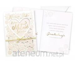 Po złożeniu format kartki DL, wyjątkowe złocenia, w środku życzenia i kieszonka na pieniądze. Dodatkowa koperta