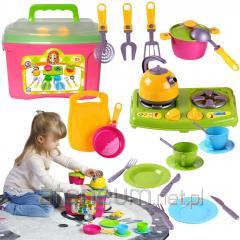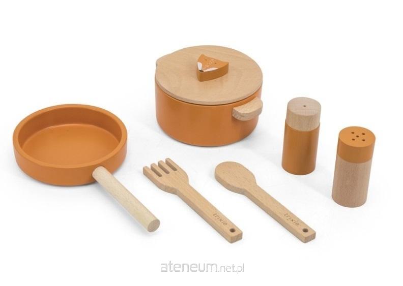 Zaczynamy gotowanie! Z tym wesołym zestawem, który zawiera jednego z naszych zwierzęcych przyjaciół, Twoje dziecko będzie miało godziny zabawy przy przygotowywaniu najbardziej szalonych potraw. Zestaw składa się z garnka, patelni, solniczki i pieprzniczki, łyżki i widelca. Wystarczy dodać tajemniczy składnik - wyobraźnię - i gotowe! Zestaw do gotowania wykonany jest w 100% z drewna certyfikowanego FSC®. Wszystkie farby użyte w produkcie są wodne, bezpieczne dla dzieci i nietoksyczne. Skład: FSC® MDF - FSC® drewno bukowe Wiek: 2+