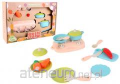 Zaczynamy gotowanie! Z tym wesołym zestawem, który zawiera jednego z naszych zwierzęcych przyjaciół, Twoje dziecko będzie miało godziny zabawy przy przygotowywaniu najbardziej szalonych potraw. Zestaw składa się z garnka, patelni, solniczki i pieprzniczki, łyżki i widelca. Wystarczy dodać tajemniczy składnik - wyobraźnię - i gotowe! Zestaw do gotowania wykonany jest w 100% z drewna certyfikowanego FSC®. Wszystkie farby użyte w produkcie są wodne, bezpieczne dla dzieci i nietoksyczne. Skład: FSC® MDF - FSC® drewno bukowe Wiek: 2+