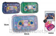 Piórnik 3 - poziomowy z wyposażeniem, który pozwala utrzymać przybory szkolne zawsze w porządku i łatwo dostępne. Kolekcja SWIMS 2 z paskami i kropkami inspirowanymi strojami kąpielowymi z lat 60. Połączenie kolorów: różowego, żółtego i granatowego. Wyposażenie: 12 kredek trójkątnych, 6 kredek metalizowanych, 18 flamastrów ze stożkową końcówką, 3 długopisy CAPSULE: czarny, czerwony i zielony; ołówek drewniany HB, 5 zakreślaczy FLUO JUNIOR, linijka trójkątna 15 cm, temperówka kwadratowa AFILA, nożyczki BASIC, gumka 4024. Każdy poziom osobno zapinany na suwak. Przy produkcji piórników użyto najlepszych materiałów, bardzo wytrzymałych suwaków oraz wzmocnionych nici. Niepowtarzalne wzornictwo. Materiał zewnętrzny i wewnętrzny 100% poliester. Rozmiar piórnika: 19,5 x 13 x 7,5 cm. W piórnikach znajdziesz min.: kredki MILAN przy produkcji których użyto drewna pochodzącego wyłącznie z plantacji, gwarantujących nieużywanie drewna z lasów deszczowych. Rysik kredki na całej długości jest przyklejony do drewna co zapobiega jego łamaniu. Dzięki trójkątnej budowie kredka jest ergonomiczna i wygodnie trzyma się dziecku. Flamastry MILAN posiadają wytrzymałą i elastyczną stożkową końcówką, która nie wpada do środka nawet przy silnym nacisku. Po chwilowym odkształceniu końcówka zawsze wraca do pierwotnego kształtu. Tusz na bazie wody. Flamastry nie zawierają ftalanów, metali ciężkich i innych. Temperówkę z bezpiecznym przykręconym ostrzem dzięki czemu ostrze nie oddzieli się od obudowy temperówki. Gumkę z naturalnym kauczukiem.
