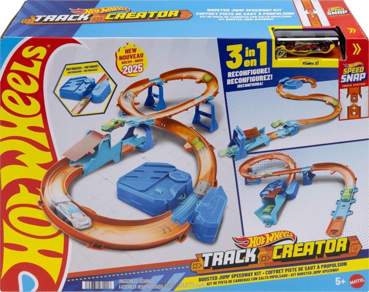 Zestaw torów samochodowych Hot Wheels, luksusowy zestaw budowlany z silnikiem wspomagającym, pojazd w skali 1:64, tor Speed Snap, tor wyścigowy Boosted Jump
